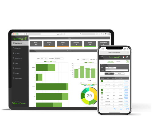 Purpose built for high density controlled environment agriculture, FarmWare handles everything from orders, to production schedules, to packing and delivery. Finally, everything you need to run your farm all in one place!
