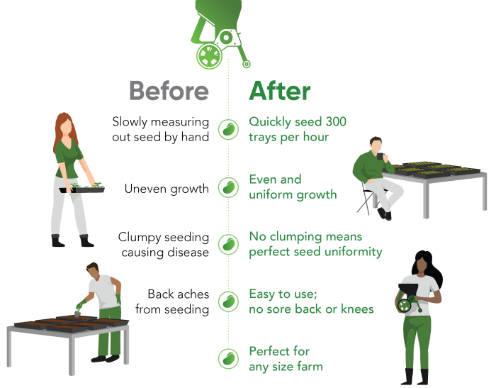 Introducing The Little Green Seeding Machine, designed to tackle this significant challenge by seeding 4X faster than hand seeding.